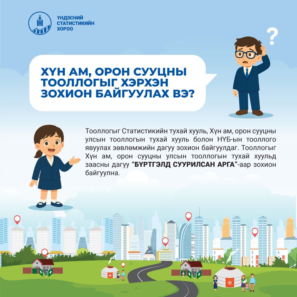 Монгол Улсын иргэн та Хүн ам, орон сууцны тооллогодоо идэвхтэй хамрагдаарай.