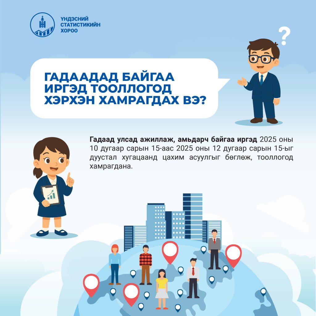 Гадаад улсад ажиллаж, амьдарч байгаа иргэд www.citizen.2025.mn цахим хуудсаар хандаж, тооллогодоо хамрагдах боломжтой.